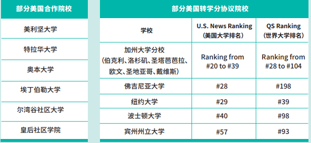 学生在国内完成ACT-GAC美高融合课程后,可获得美国合作高中的毕业文凭。在此基础上,可免SAT 成绩,保录进入合作大学。之后,通过大学转学保录计划,在满足录取基本要求的情况下,转学进入美国名校。